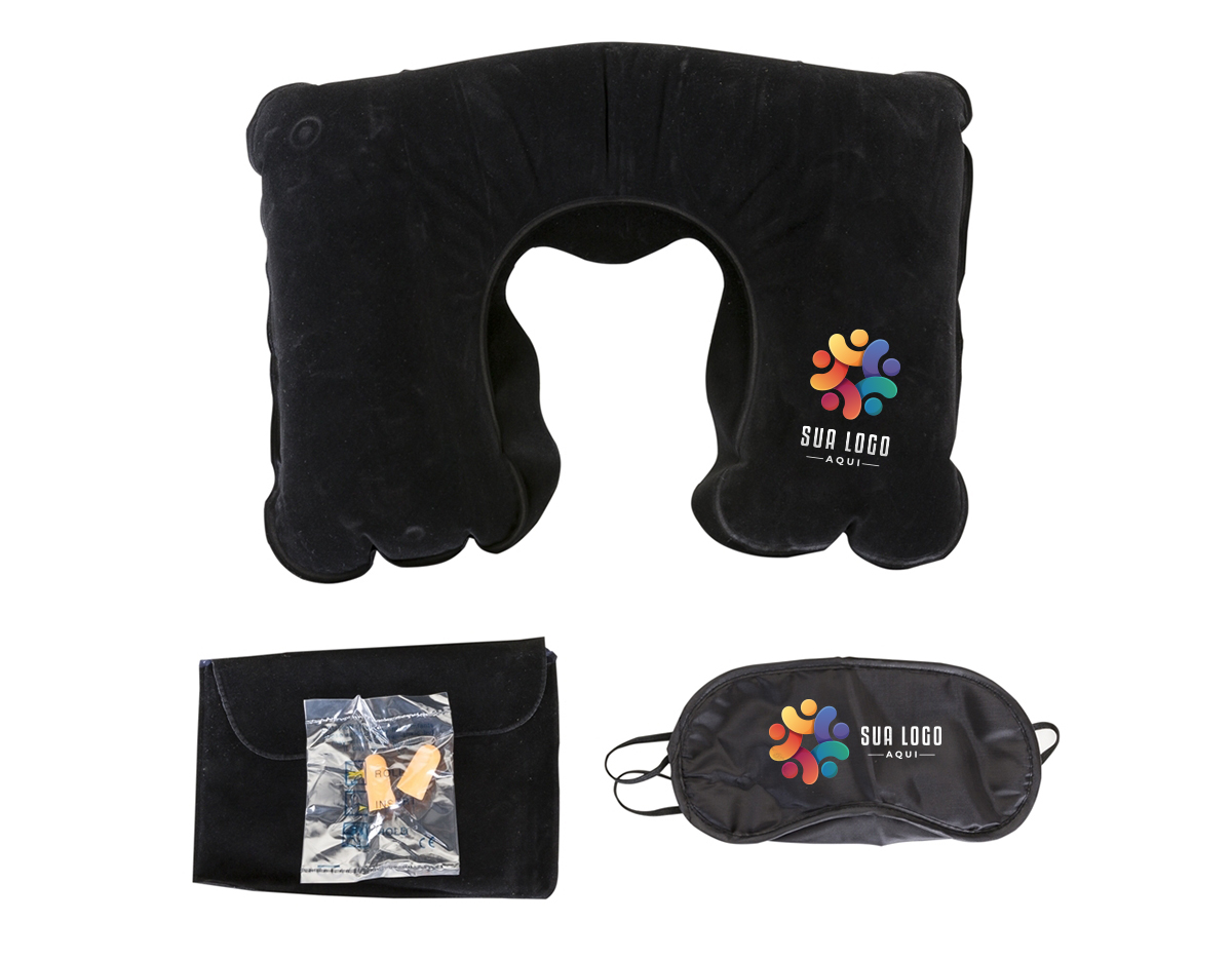 Kit viagem com 3 peças, contém: travesseiro inflável(revestido de veludo), ...
